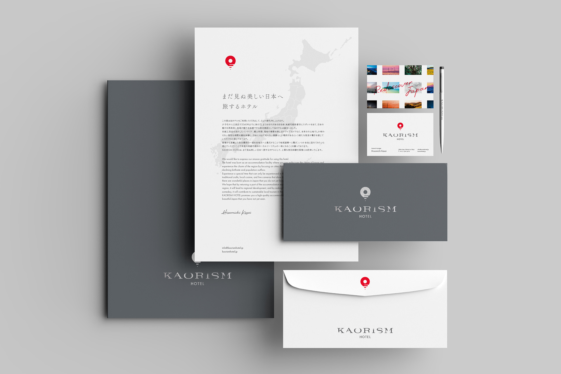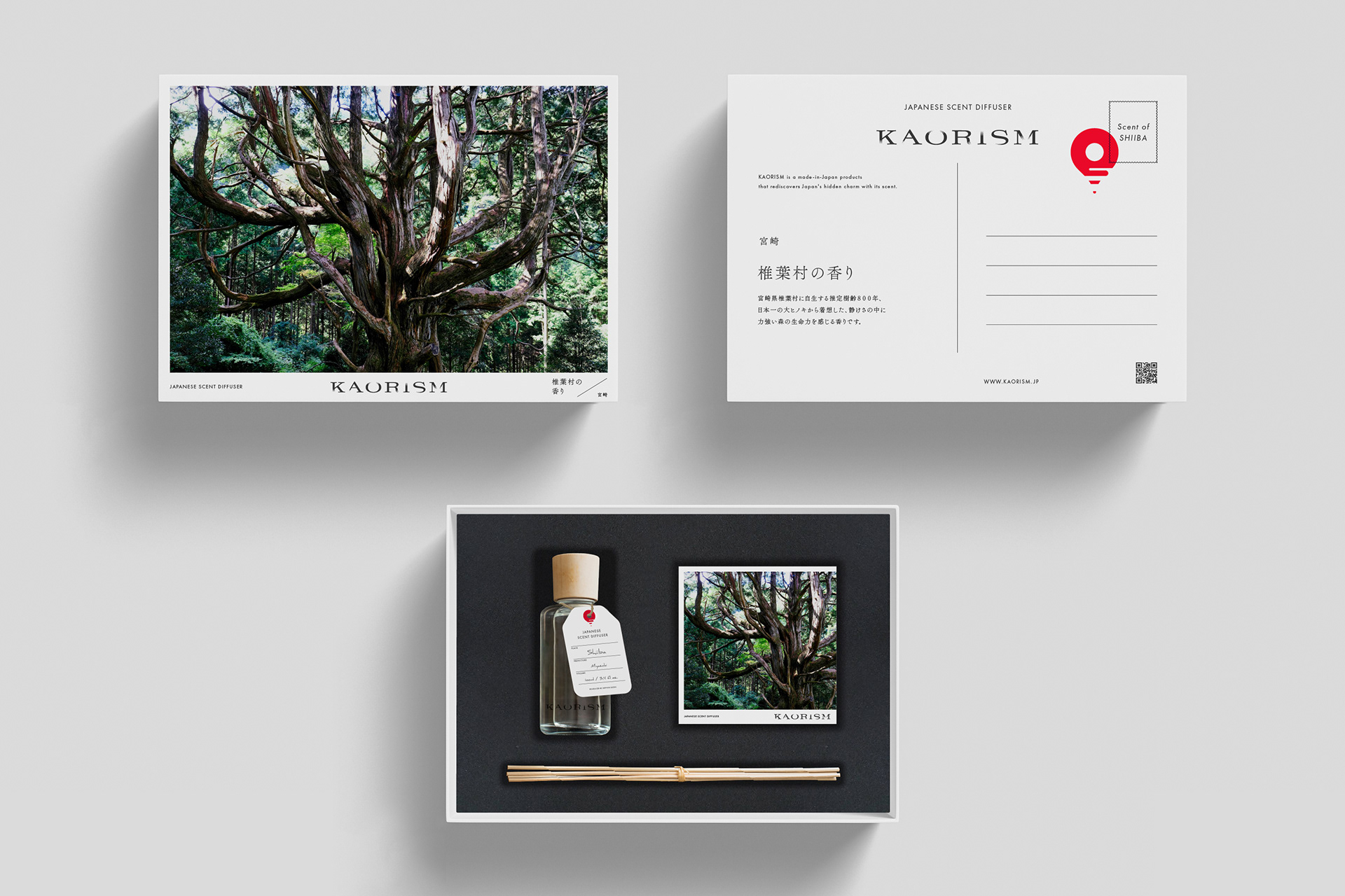 「まだ見ぬ日本へ旅する香り」をコンセプトに、その土地ならではの素材や印象的な風景など、地域の豊かな個性を香りに反映したプロダクトです。マップピンの機能をもつシンボルマークや、旅先の絵葉書をモチーフにした箱など、旅を切り口にデザインを展開。さらに、消滅可能性都市を疑似体験できるホテルへとブランドを拡張し、より深く地域の魅力を伝えます。地域課題への意識を高め、ローカルツーリズムなど地域活性化のきっかけとなるブランドを目指しました。