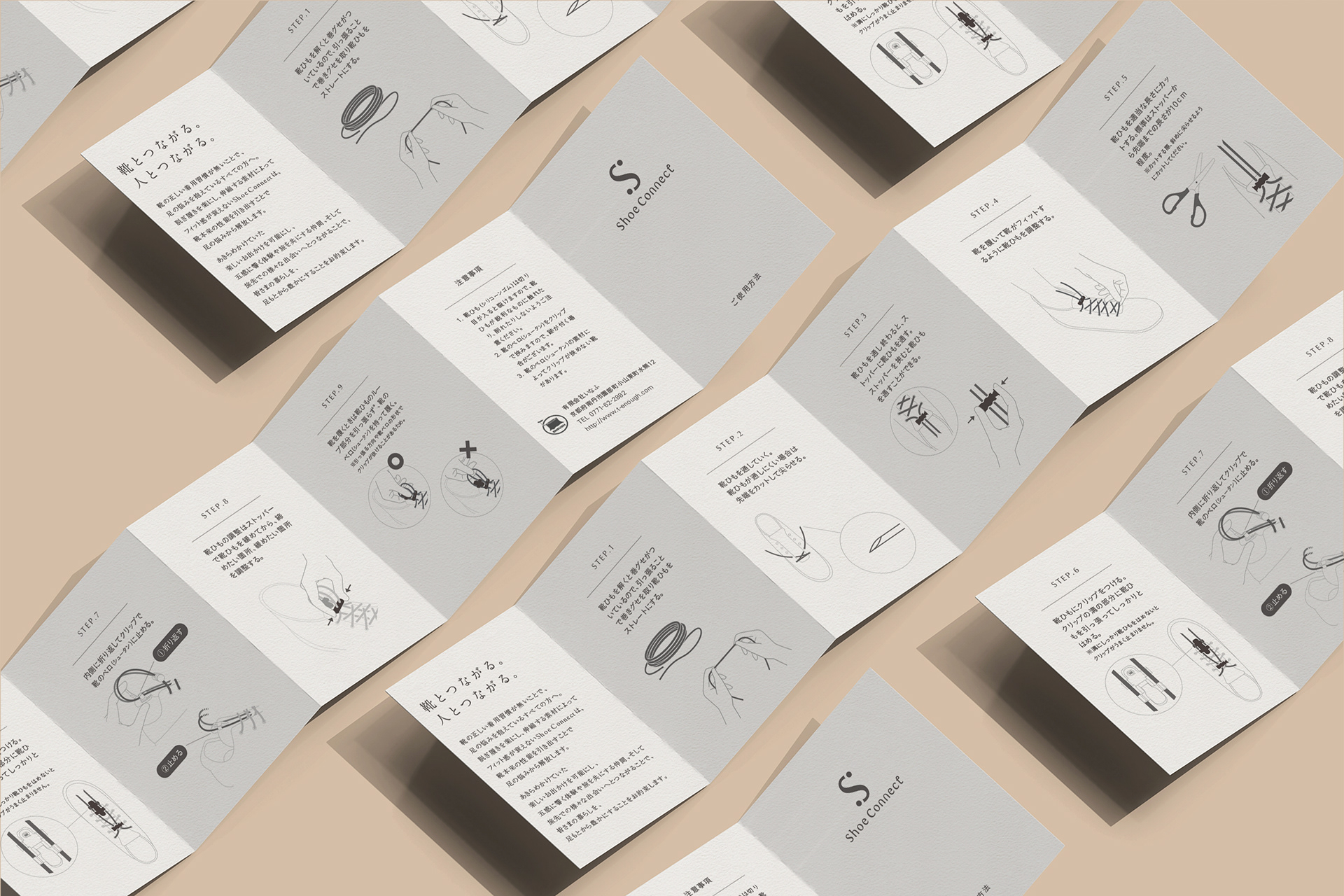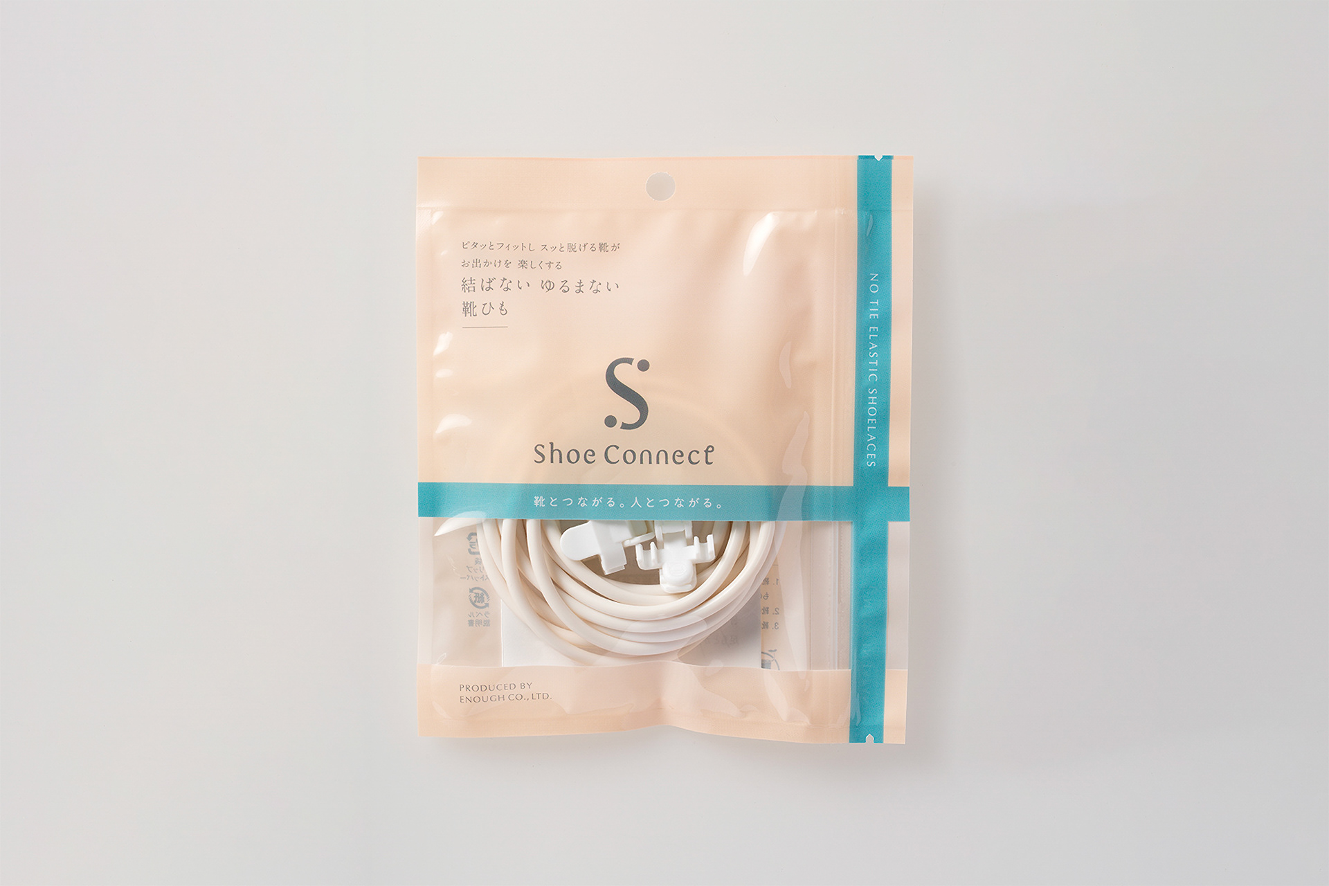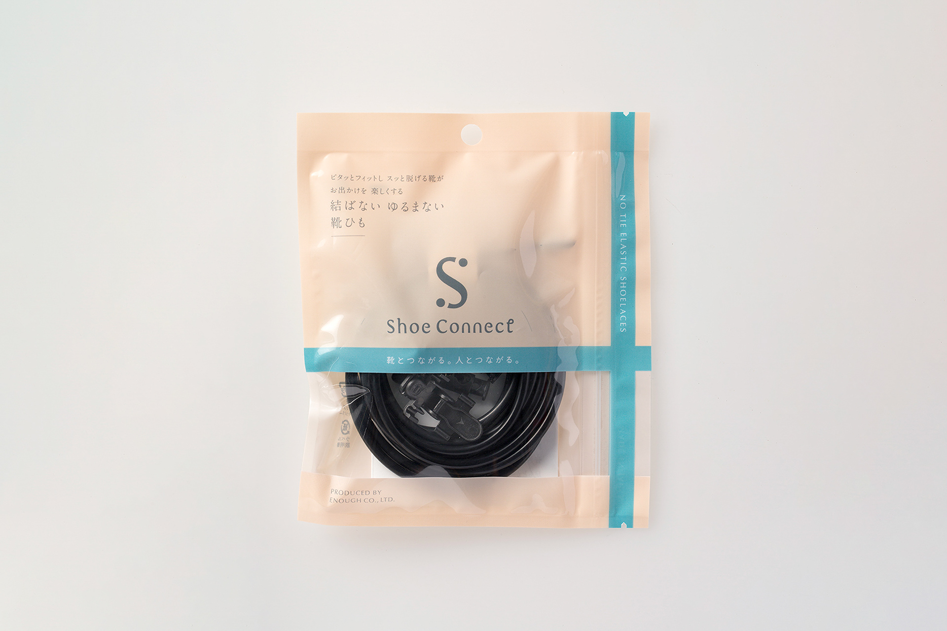 靴本来の性能を引き出すことで足の悩みから解放する、結ばない・ゆるまない靴紐ブランド「Shoe Connect」のブランドロゴとパッケージデザイン。