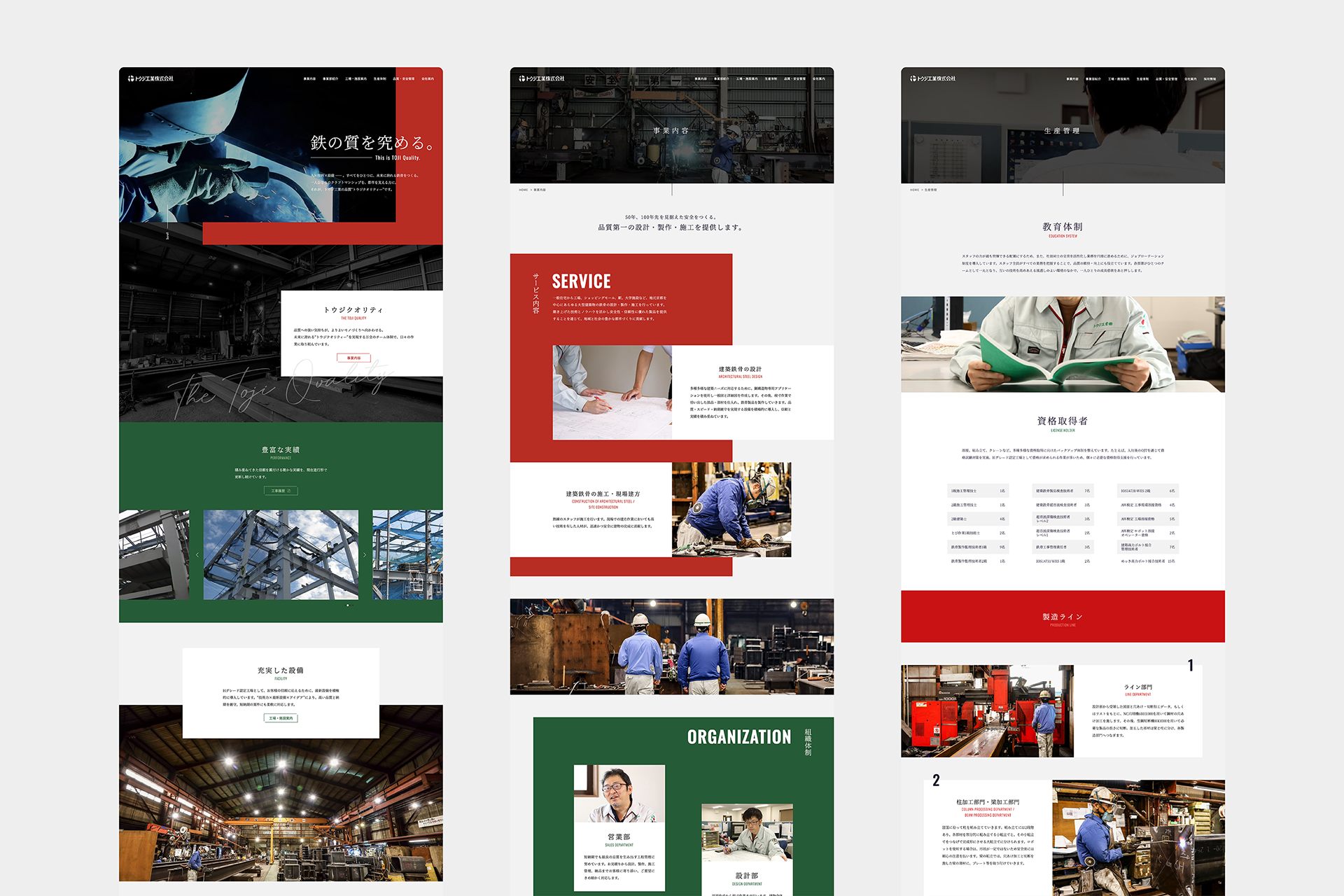 京都で唯一のHグレード認定工場を持つ鉄工所TOJIのコーポレートサイト。3Kと言われる業種のイメージを払拭する、スマートでクラフトマンシップを感じられるデザインを目指しました。製造現場のダイナミズムがより伝わるような映像やスムーズなインタラクションなど細部までこだわりました。